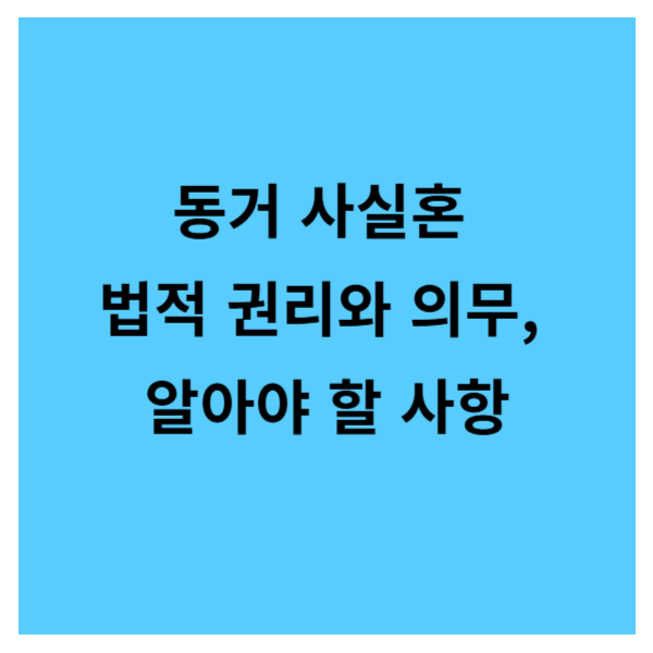 동거 사실혼은 법적으로 혼인 신고를 하지 않았지만 실질적으로 부부처럼 생활하는 관계를 의미합니다. 이러한 관계는 현대 사회의 가치관 변화를 반영하며, 법적 혼인과 비교했을 때 어떠한 권리와 의무가 있는지에 대한 관심이 고조되고 있습니다. 하지만 동거 사실혼은 법적 보호가 제한적이기 때문에, 관계를 맺기 전 충분한 이해와 준비가 필요합니다. 본 글에서는 동거 사실혼의 법적 권리, 인정 기준, 자녀 문제, 그리고 법적 분쟁 등을 종합적으로 살펴보겠습니다. 이를 통해 독자 여러분들이 동거 사실혼에 대한 명확한 이해를 갖고, 필요할 경우 전문가의 도움을 받을 수 있도록 돕고자 합니다.